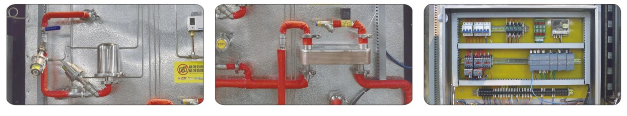 ● Pipeline system:stainless steel sanitary pipeline with clamp joints,are all welded by automatic pipe welder.German GEMUE angle seat valve,Taiwan Airtac solenoid valve,German SPECK direct-connected water ring vacuum pump.